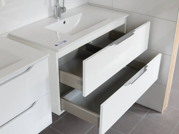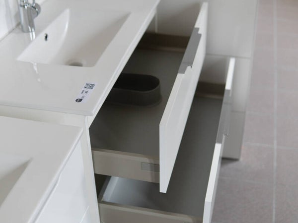 Wavedesign badkamermeubel. Model: San Marino. Afmeting: ca.: 90 x 45 Kleur: Hoogglans antraciet. Bestaande uit: Onderkast met 2 laden en een keramische wastafel. Let op ! Geleverd wordt zoals in omschrijving, eventuele randartikelen zichtbaar op foto’s of afbeeldingen worden indien niet beschreven niet meegeleverd. Winkelverkoopprijs: € 1.645,-