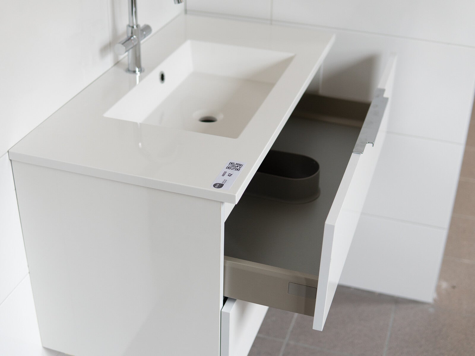 Wavedesign badkamermeubel. Model: San Marino. Afmeting: ca.: 90 x 45 Kleur: Hoogglans wit. Bestaande uit: Onderkast met 2 laden en een mineraal marmeren wastafel. Met als extra wastafelkraan t.w.v. € 245,- Let op ! Geleverd wordt zoals in omschrijving, eventuele randartikelen zichtbaar op foto’s of afbeeldingen worden indien niet beschreven niet meegeleverd. Winkelverkoopprijs: € 1.485,-