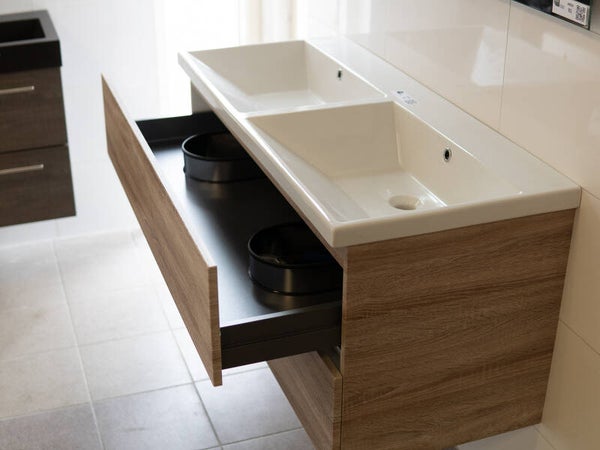 Wavedesign badkamermeubel, Model: Moetz, Afmeting: ca.: 120 x 45, Kleur: Naturale wood. Bestaande uit: onderkast met 2 lade en keramische wastafel. Conditie: Showmodel. Bijzonderheden: Let op ! Geleverd wordt zoals in omschrijving, eventuele randartikelen zichtbaar op foto’s of afbeeldingen worden indien niet beschreven niet meegeleverd. Winkelverkoopprijs: € 1.915,-