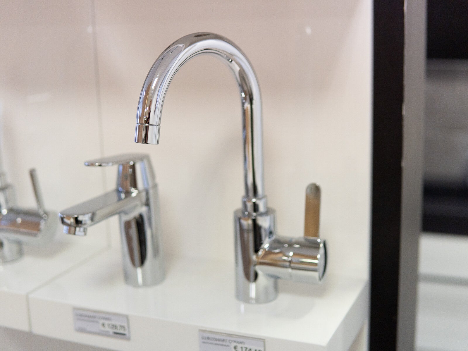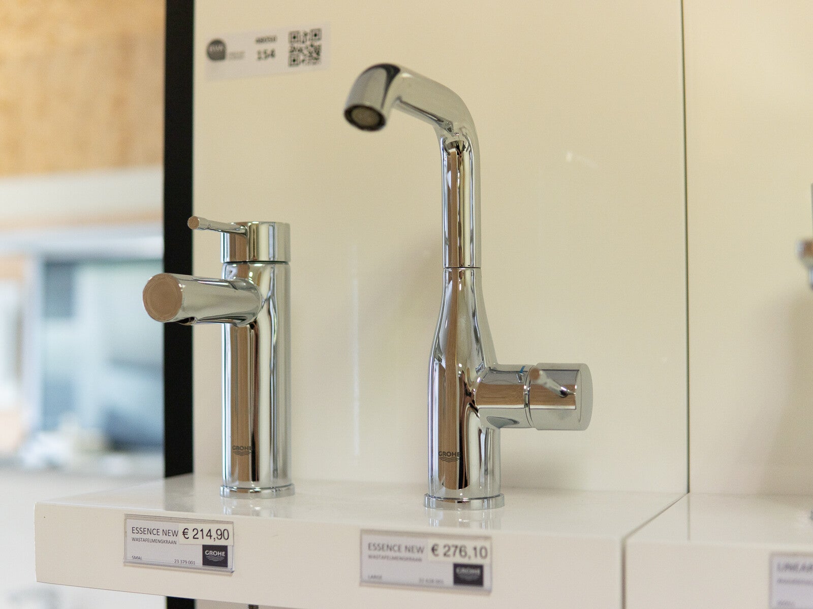 x kranen display met diverse 13st Grohe kranen, incl. display t.w.v. circa € 3.500,- (Let op! bij de kranen zitten geen aansluitslangen)