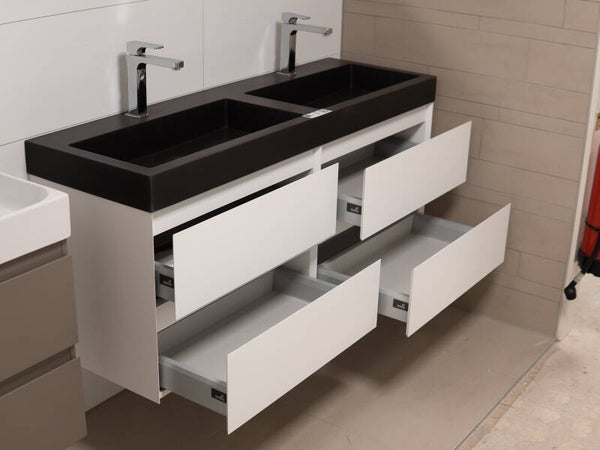 Blizz showroommeubel, ca. 140 x 45 (lxd), kleur: mat wit. Betreft: de onderkast met 2 laden, wastafel quartz zwart en 2 Xenz wastafelkranen. Geleverd wordt zoals in omschrijving, eventuele randartikelen zichtbaar op foto’s of afbeeldingen worden indien niet beschreven niet meegeleverd. Winkelverkoopprijs: € 2.475,-