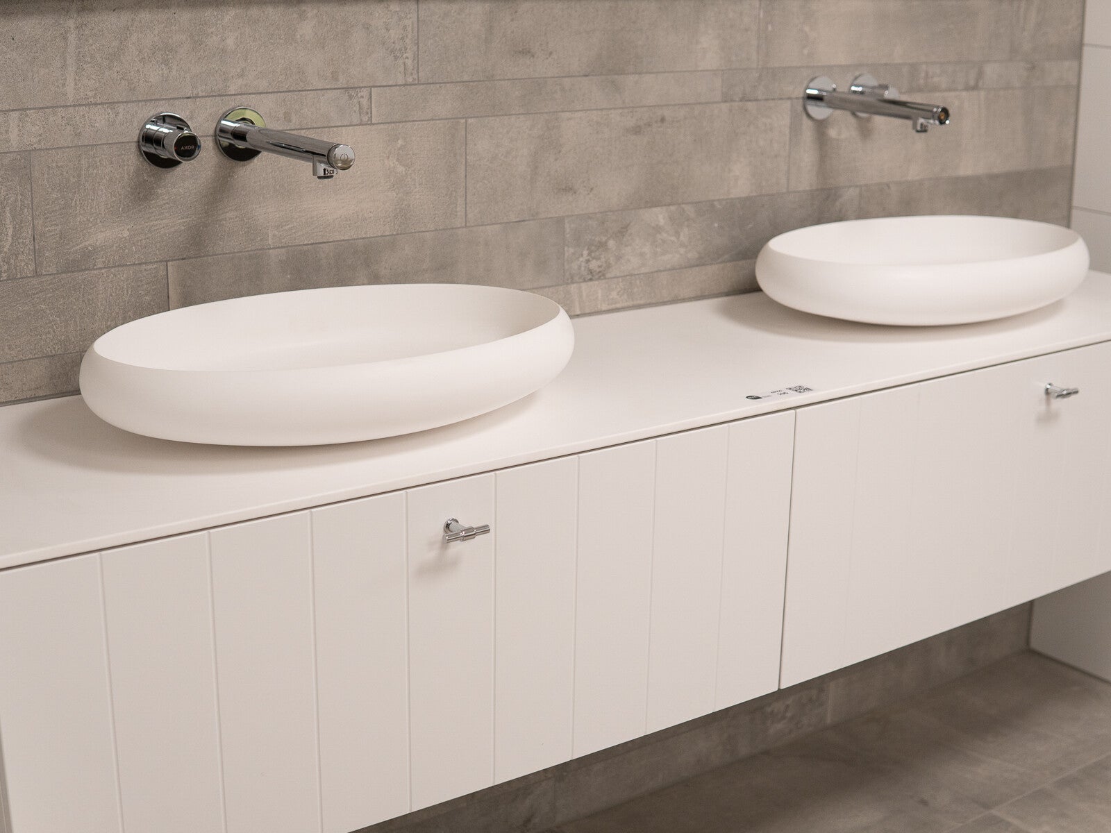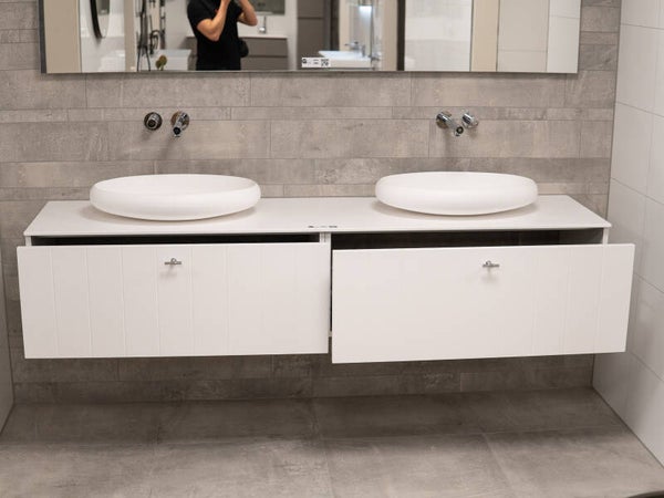 Thebalux showroommeubel, maatwerk, 200 x 45 cm breed, kleur: mat wit. Betreft: de onderkast met 2 laden, stone blad wit met 2 opzetkommen. Geleverd wordt zoals in omschrijving, eventuele randartikelen zichtbaar op foto’s of afbeeldingen worden indien niet beschreven niet meegeleverd. Winkelverkoopprijs: € 2.915,-