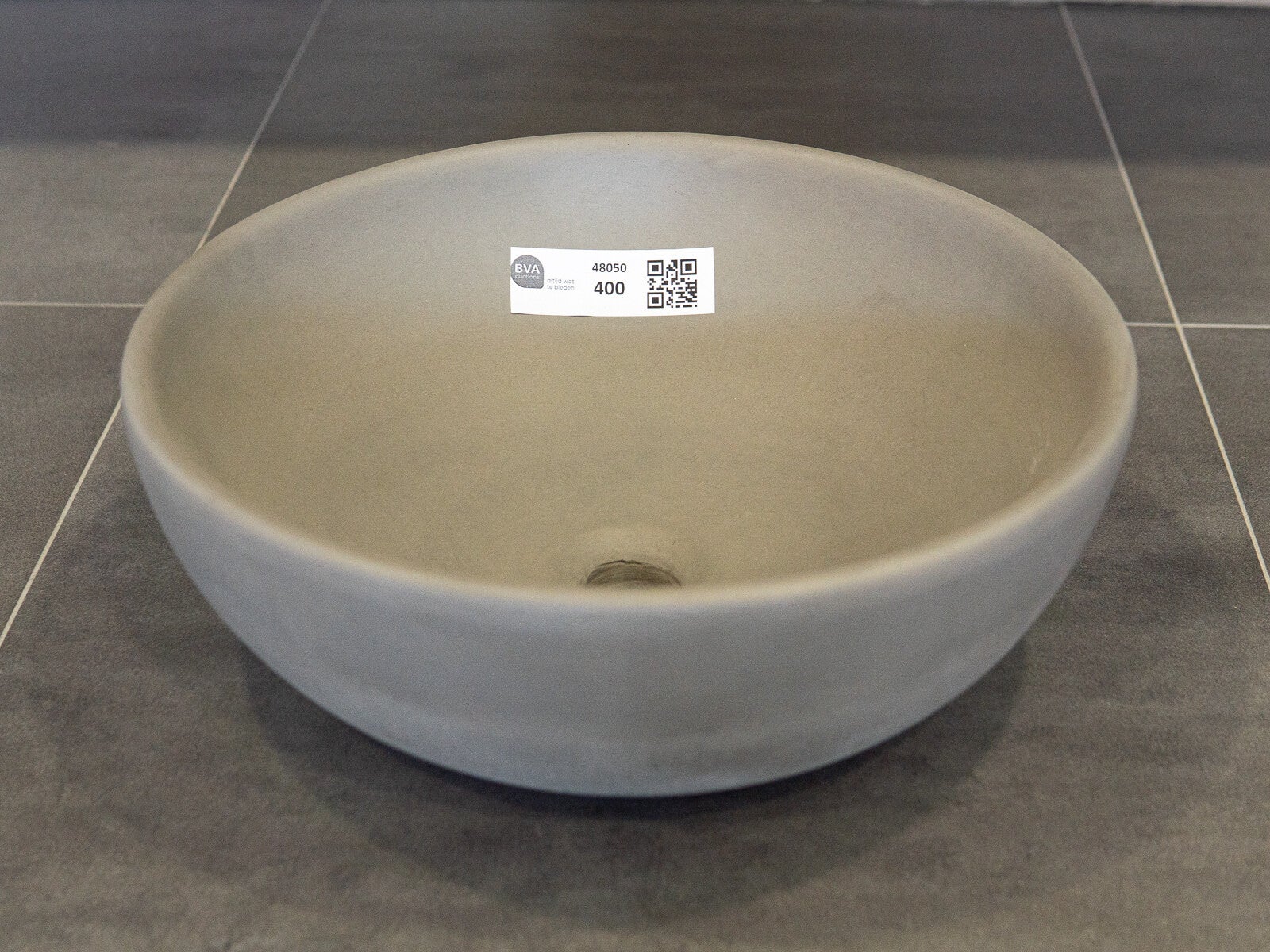 Thebalux opzetkom rond. Model: Beton Round 02. Afmeting: ca.: 44 cm doorsnede. Kleur: betongrijs. Bestaande uit: design opzetkom met een doorsnede van 44 cm. Let op ! Geleverd wordt zoals in omschrijving, eventuele randartikelen zichtbaar op foto’s of afbeeldingen worden indien niet beschreven niet meegeleverd. Winkelverkoopprijs: € 499,- Nieuw product.