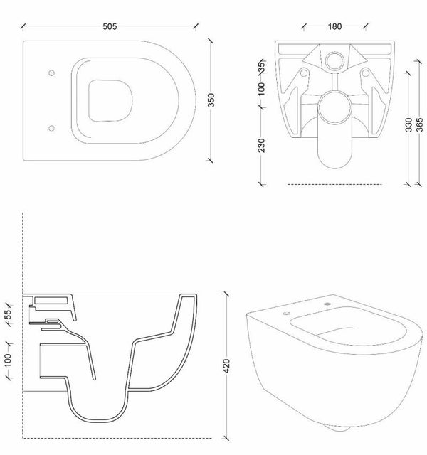 Xenz Wandcloset met softclose zitting. Model: Gio AL8801. Kleur: matzwart. Bestaande uit: een wandcloset zonder spoelrand!