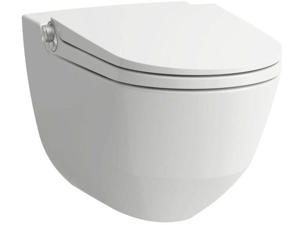 Laufen douchetoilet met softclose zitting. Model: Riva. Kleur: matwit. Bestaande uit: een wandcloset zonder spoelrand!